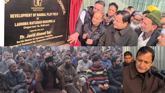 BARAMULLA: In a significant step towards strengthening the sports infrastructure in north Kashmir, Minister for Agriculture Production Department, Rural Development & Panchayati Raj, Javid Ahmad Dar, today laid foundation stone for development of Nagbal Playfield at Ladoora, Rafiabad in Baramulla.
