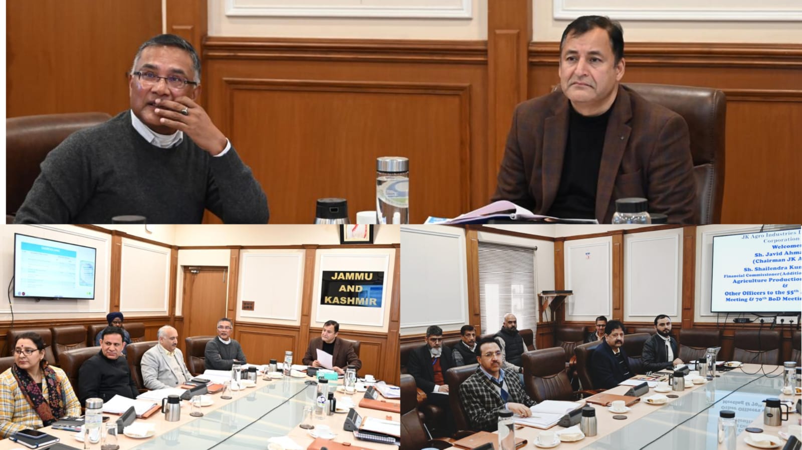 JAMMU: Minister for Agriculture Production, Rural Development, Panchayati Raj, Cooperative and Election Department, Javid Ahmad Dar, today chaired the 70th meeting of the Board of Directors of Jammu and Kashmir Agro Industries Development Corporation Limited (JKAIDCL) at the Civil Secretariat, Jammu.