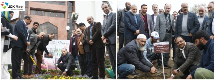 MD & CEO, J&K Bank, Baldev Prakash led the drive by planting a fruit sapling in the lawn of Bank’s corporate headquarters with General Managers, DGMs and other senior officers present on the occasion. General Managers and DGMs also planted different trees in the lawn.