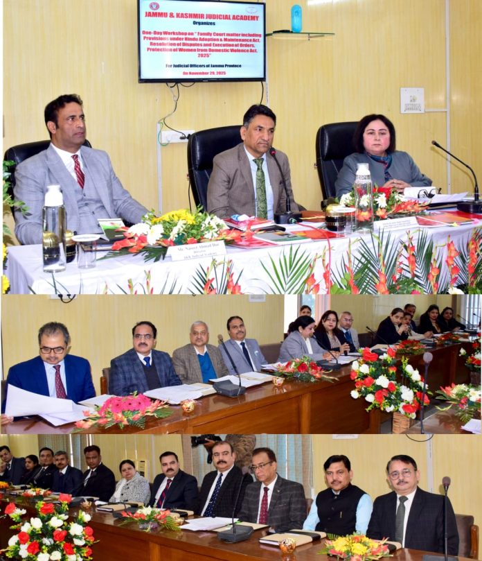 JAMMU: Under the patronage of Justice Arun Palli, Chief Justice, High Court of Jammu & Kashmir and Ladakh (Patron-in-Chief, J&K Judicial Academy), guidance of Chairperson and members of Governing Committee for J&K Judicial Academy, the Jammu & Kashmir Judicial Academy today organized a one day workshop on “Family Court Matters, including provisions under the Hindu Adoption and Maintenance Act, Guardian and Wards Act, Resolution of Disputes, Execution of Orders and Protection of Women from Domestic Violence Act, 2005” at Janipur, Jammu.