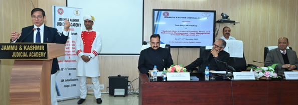 JAMMU: J&K Judicial Academy, under the patronage of Justice N. Kotiswar Singh, Chief Justice, High Court of Jammu & Kashmir and Ladakh, (Patron-in-Chief, J&K Judicial Academy) and stewardship of Justice Sanjeev Kumar, Chairperson, Governing Committee for J&K Judicial Academy and guidance of Justice Javed Iqbal Wani, Justice Rahul Bharti and Justice Moksha Kazmi, members of Governing Committee for J&K Judicial Academy, organized two day workshop on “Judicial Ethics & Code of Conduct, Stress and Behavioral Management, Court Management & Docket Management, etc.” for Civil Judges (Senior and Junior Division) of Jammu Province at J&K Judicial Academy, Janipur, Jammu.