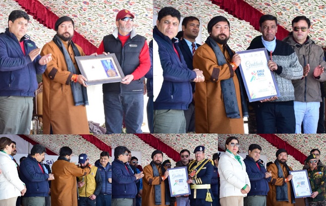 Joint Secretary, Ministry of Youth Affairs & Sports, Prem Kumar Jha; Secretary Youth Services & Sports and Tourism, Sarmad Hafeez; Secretary J&K Sports Council Nuzhat Gul; CEO, Gulmarg Development Authority besides Major General RK Sing and President Winter Games Rouf Trumboo, Officers of line departments, players and tourists were present on the occasion