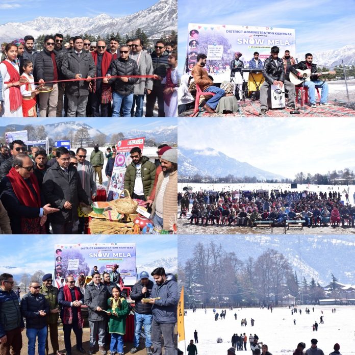 KISHTWAR: District Administration Kishtwar, under the leadership of Deputy Commissioner Rajesh Kumar Shavan, on Friday organized the Snow Mela at the historic Chowgan Ground to spread awareness about the government schemes like Beti Bachao Beti Padhao, Mission Yuva, Road Safety, Nasha Mukt Bharat Abhiyan, and Swachh Bharat Abhiyan, while also promoting tourism and local culture, the.