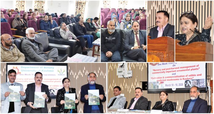 Earlier, Head, Department of Botany KU, Prof. Aijaz Ahmad Wani, said the programme was designed to provide participants with practical exposure and scientific understanding necessary for developing entrepreneurial ventures in ornamental plant nurseries and mushroom production.