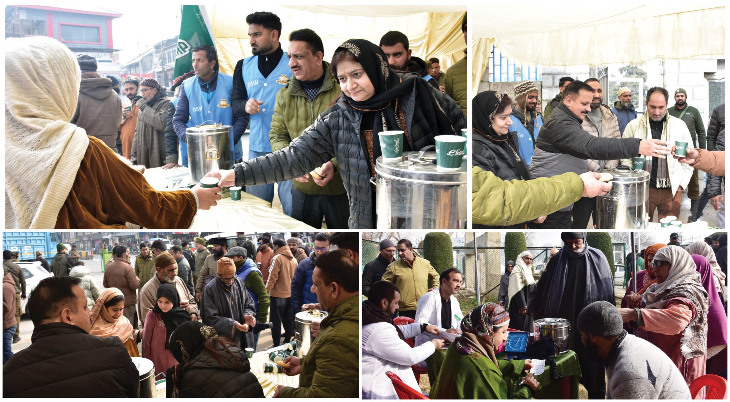 The twin camps were set up at the Sir Syed Gate of the University campus, where refreshments were served to devotees arriving from various corners of the Valley, while free medical check-ups and basic healthcare services were also provided at the medical camp.