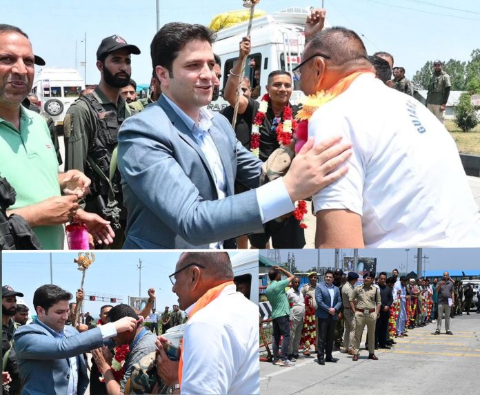 All the pilgrims were welcomed by Deputy Commissioner (DC) Kulgam, Athar Amir Khan along with Senior Superintendent of Police (SSP) Kulgam, Sahil Sarangal and other officials from civil and police department, besides civil society members, trade fraternity, fruit growers and other local citizens.