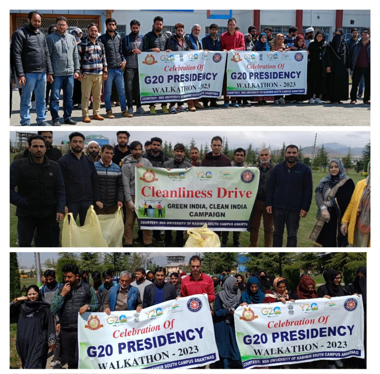 ANANTNAG: The South Campus of the University of Kashmir organised a walkathon and a cleanliness drive as part of two-day celebrations in the campus related to the country’s G20 Presidency.