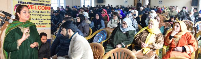 Dr. Hina Shafi assured the aspiring entrepreneurs of the Urban areas that the government is committed to hand-holding for development of Micro-Industrial Sector in UT of J&K. Underlining the need for inculcation of market-oriented skills among youth, she reiterated that Board is working in this direction and craft & skill trainings are being undertaken in various districts of J&K. She requested the educated youth to come forward and avail benefits of the scheme & create their income/employment generating units without wandering after the government jobs.