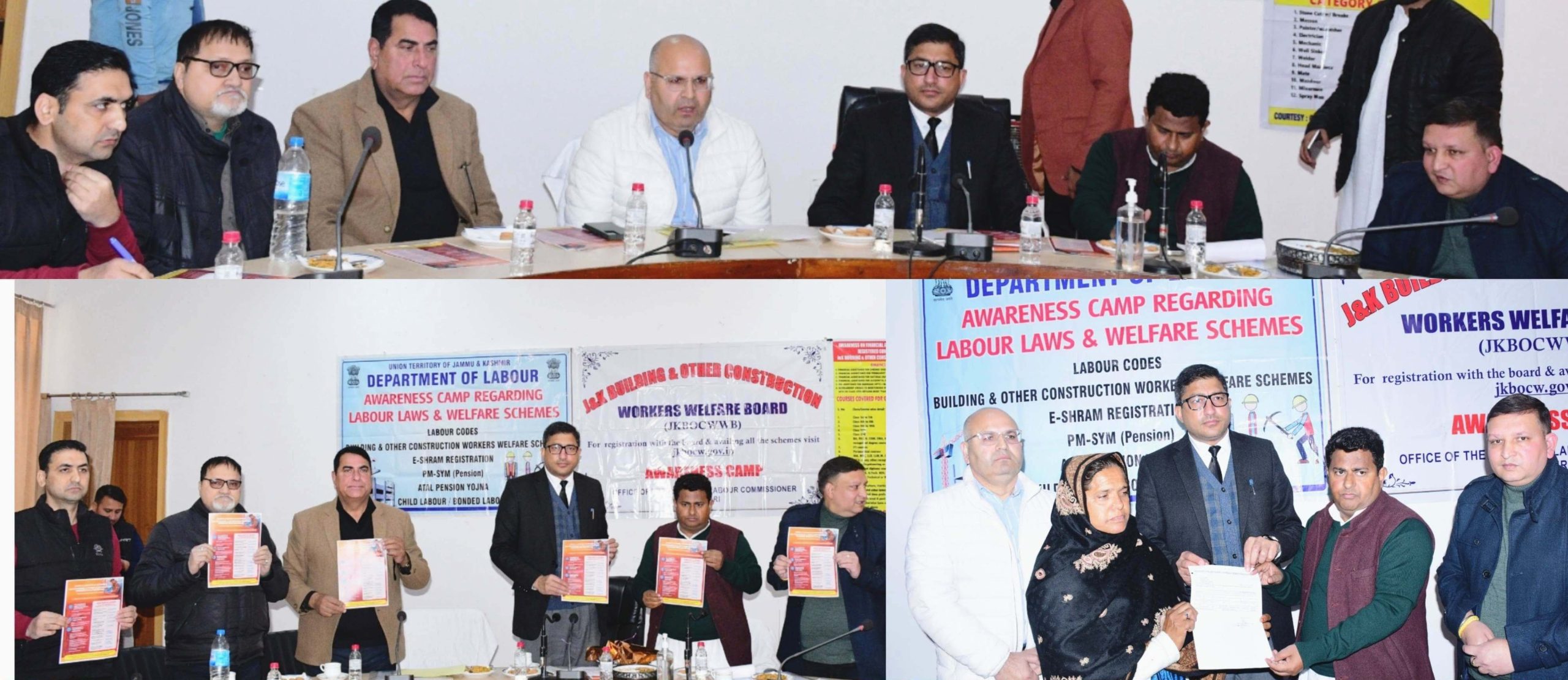 RAJOURI: The Labour & Employment Department, Rajouri, today organized a District-Level Awareness Workshop at Dak Bungalow Rajouri to educate the public about various labour laws and welfare schemes available for registered construction workers.