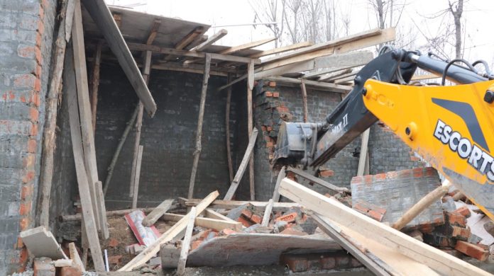 SRINAGAR: The Enforcement Wing of Lakes Conservation & Management Authority today carried out a demolition drive in the areas of Ranger-stop Saida Kadal Ashai-bagh, Habak & Lashkari Mohalla Northern foreshore road.