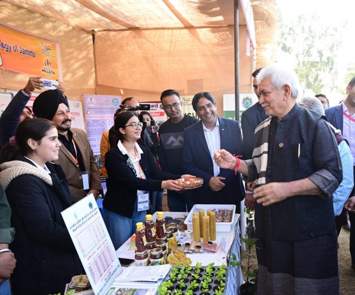 He visited the stalls put up by government departments, SKUAST Jammu; Institute of Music and Fine Arts, JU; Army; entrepreneurs; Farmer Producers Organizations, Cooperatives and Self Help Groups, during the Mahotsav.