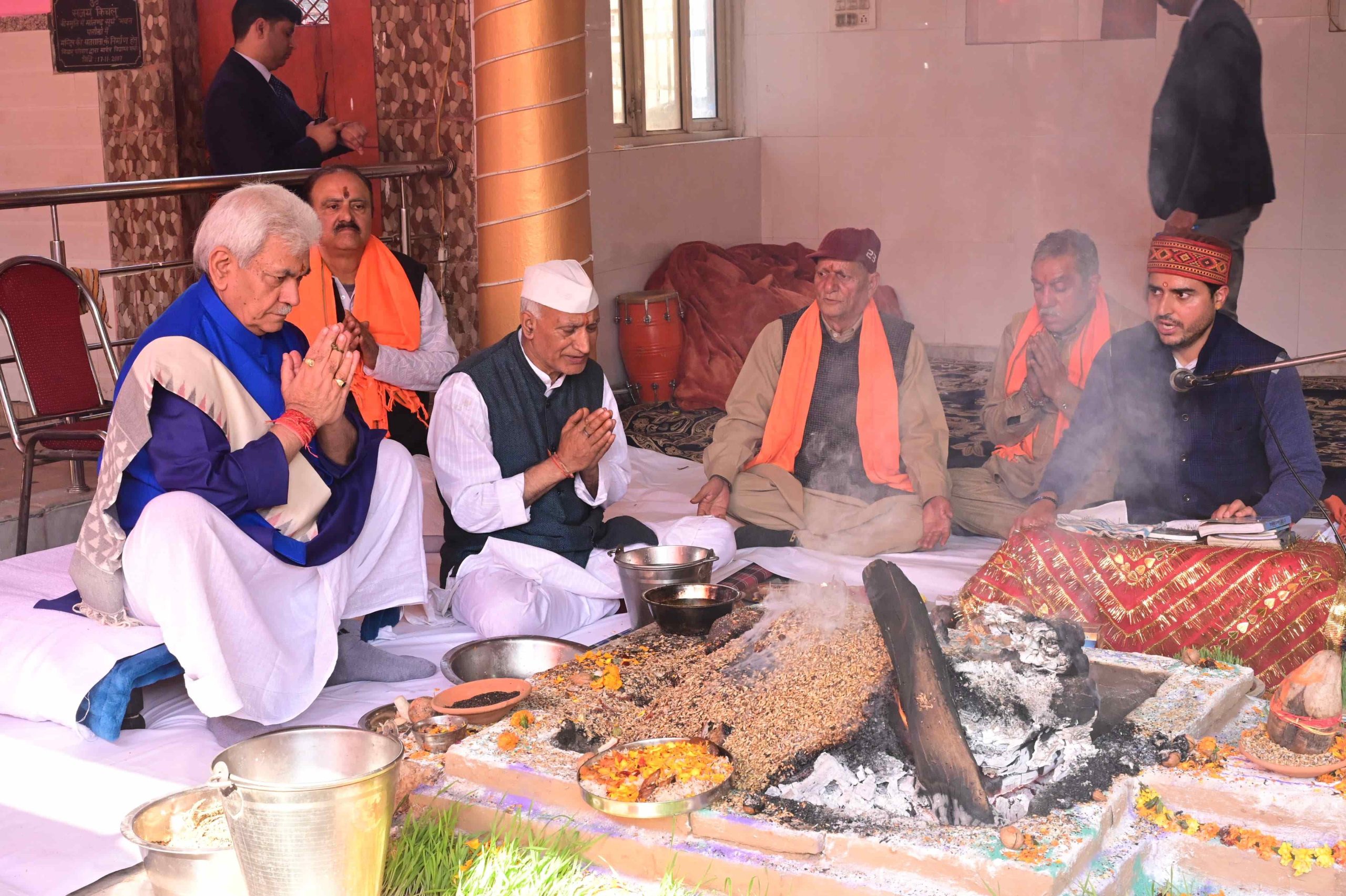 JAMMU: On the holy occasion of Surya Saptami, Lieutenant Governor Manoj Sinha paid obeisance to Lord Shri Martand at Shri Martand Surya Temple, Paloura, Jammu, today.