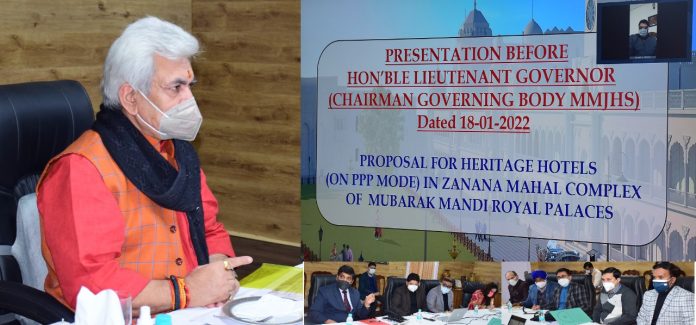 During the meeting, the Lt Governor who is the Chairman of the Mubarak Mandi Jammu Heritage Society took a comprehensive review of different works under execution for transforming the Mubarak Mandi Complex as a major tourist attraction in Jammu.