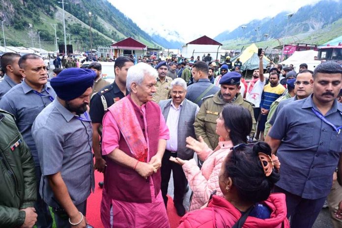 At Base Camp, the Lt Governor interacted with the Pilgrims, Service Providers and Officials and reviewed the arrangements related to ongoing Shri Amarnath Ji Yatra.