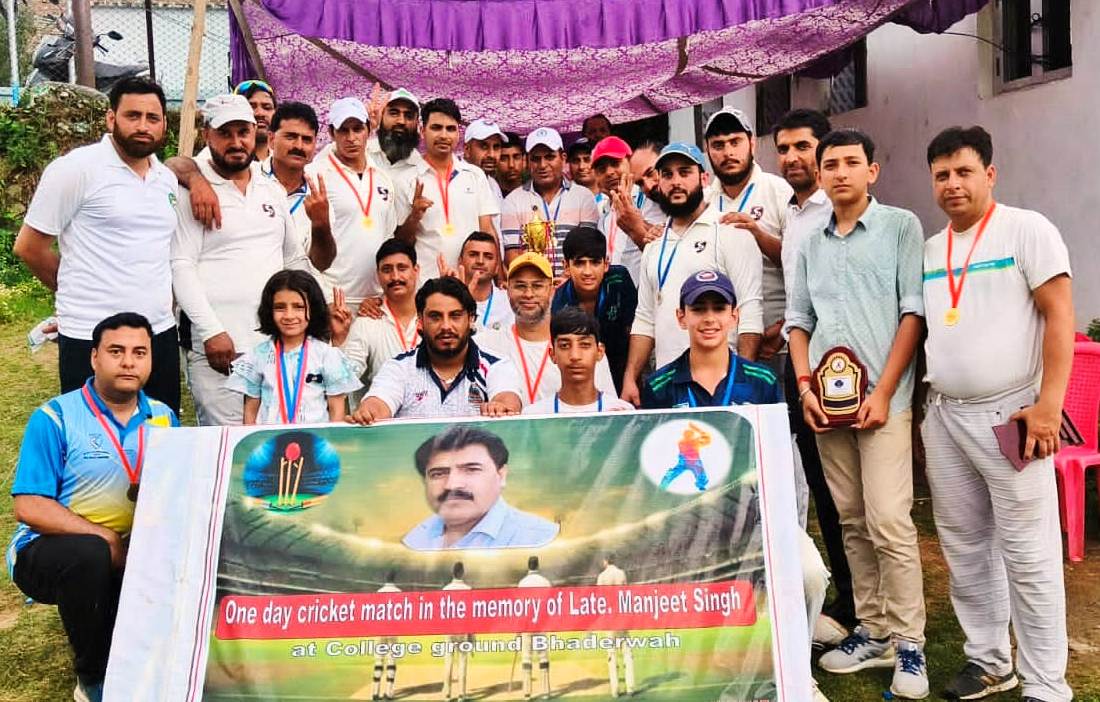 DODA: A one-day exhibition cricket match was hosted on Government PG College Ground Bhaderwah today to pay tributes to the late legendary cricketer and social activist Manjeet Singh.