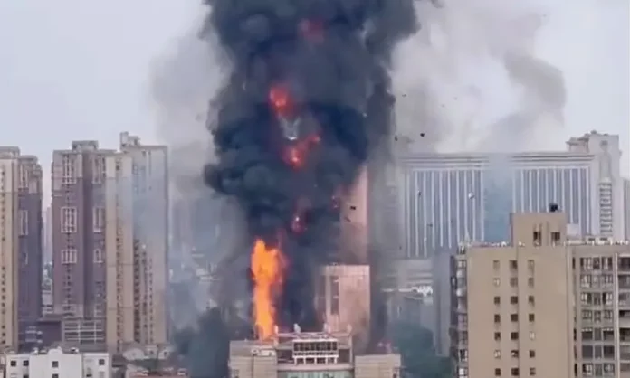 The blaze broke out in a 42-floor building housing an office of the state-owned telecommunications company China Telecom, according to the state broadcaster CCTV.