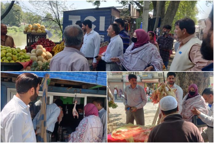 GANDERBAL: On the directions of District Administration Ganderbal, a joint team of Food Safety and FCS&CA today conducted extensive Market checking of Main Market Duderhama Ganderbal especially Butchers, Grocery stores, Nanwais and Chicken sellers.