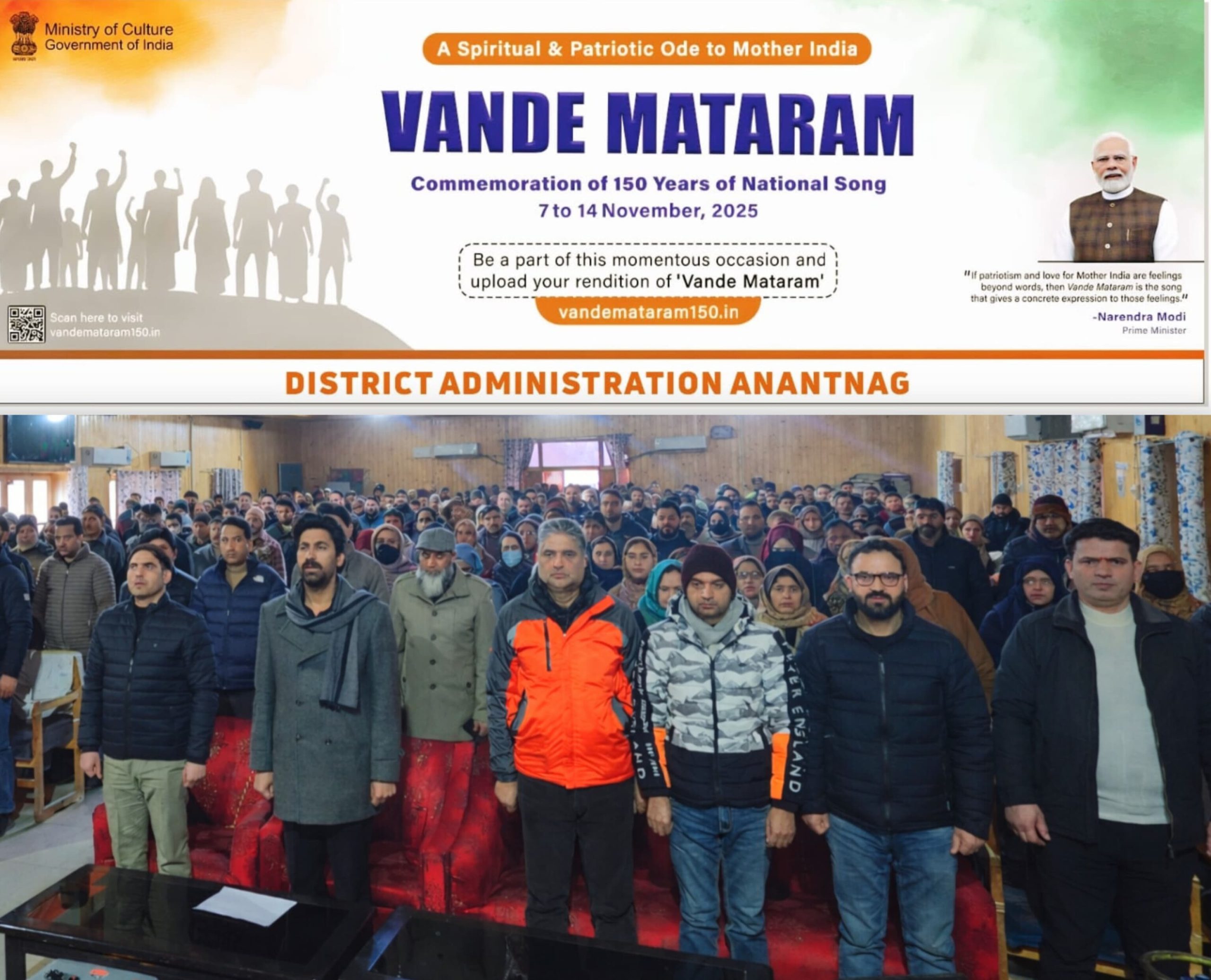 ANANTNAG: In accordance with the national-level calendar, Phase-II of the “Vande Mataram” 150 Years Commemoration Campaign commenced today across Anantnag with multiple mass singing programmes organised at prominent public venues and institutions throughout the district.