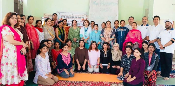 JAMMU: Directorate of AYUSH, on the directions of Director Dr. Mohan Singh and supervision of DAO Dr. Vandana Dogra, organized a Mega Yoga Camp on “Yoga For Women Empowerment“ here at Government College of Education Jammu. The Mega yoga Camp was organized under the guidance and supervision of Principal Dr.(Prof.) Jyoti Parihar