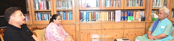 Later, Nuzhat Ishfaq, DDC Chairperson, Ganderbal accompanied by former Legislator, Ishfaq Jabbar also called on the Lt Governor and apprised him of various developmental issues of Ganderbal.