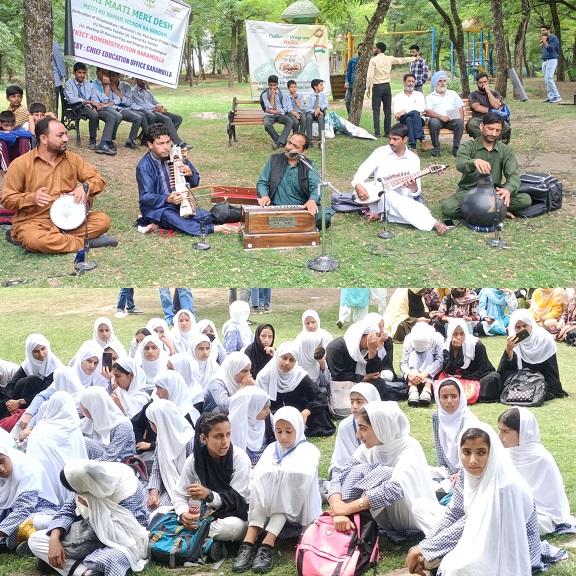 BARAMULLA: In connection with celebrations of ‘Meri Maati, Mera Desh’ campaign, the District Information Centre Baramulla in collaboration with Cultural Unit Srinagar and other departments today conducted a Cultural event at Eco Park Khadiniyar Baramulla through which a rich and glowing tribute was paid to to all those heroes who made supreme sacrifices for the noble cause.