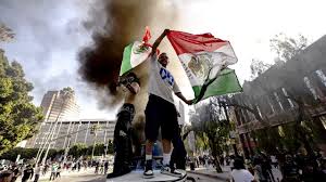 The Department of Homeland Security has circulated images showing protesters clashing with police while waving the Mexican flag. Stephen Miller, Trump’s deputy chief of staff for policy, described the demonstrators on social media as “foreign nationals, waving foreign flags, rioting and obstructing federal law enforcement attempting to expel illegal foreign invaders.”