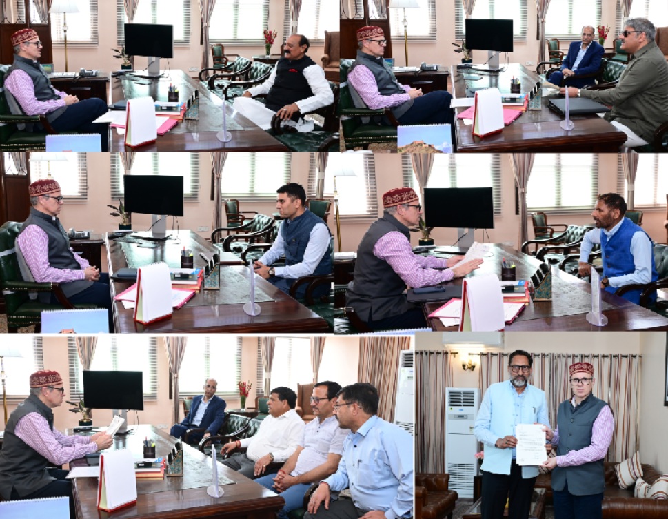 MLA Samba Surjeet Singh Slathia, MLA Banihal Sajad Shaheen, MLA Ramban Arjun Singh Raju, MLA Bhaderwah Daleep Singh Parihar, MLA Gulabgarh Er Khursheed Ahmed, and MLA Anantnag West Abdul Majeed Bhat Laram met the Chief Minister and apprised him of various issues pertaining to their respective constituencies.