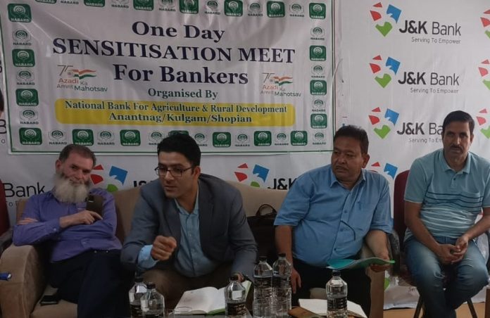 SHOPIAN: In order to sensitize the bankers regarding various schemes of Govt of India implemented through NABARD, a one-day sensitization workshop was held at J&K Bank Hall Shopian.