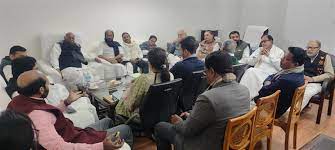 Sources said the leaders of the Congress, RJD, DMK, NCP, JDU, AAP, Left parties met in the chamber of Leader of Opposition in Rajya Sabha Mallikarjun Kharge in Parliament complex.