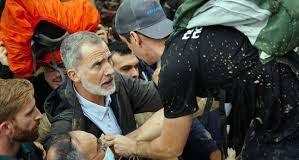 Flood survivors toss mud at Spanish King