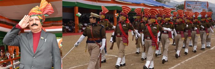 Chairman District Development Council, Saraf Singh Nag unfurled the National Flag and took the salute at an impressive march-past consisting of 21 contingents drawn from JKAP, JKP, Home Guards, STC Talwara, NCC Boys & Girls and various schools of the district.