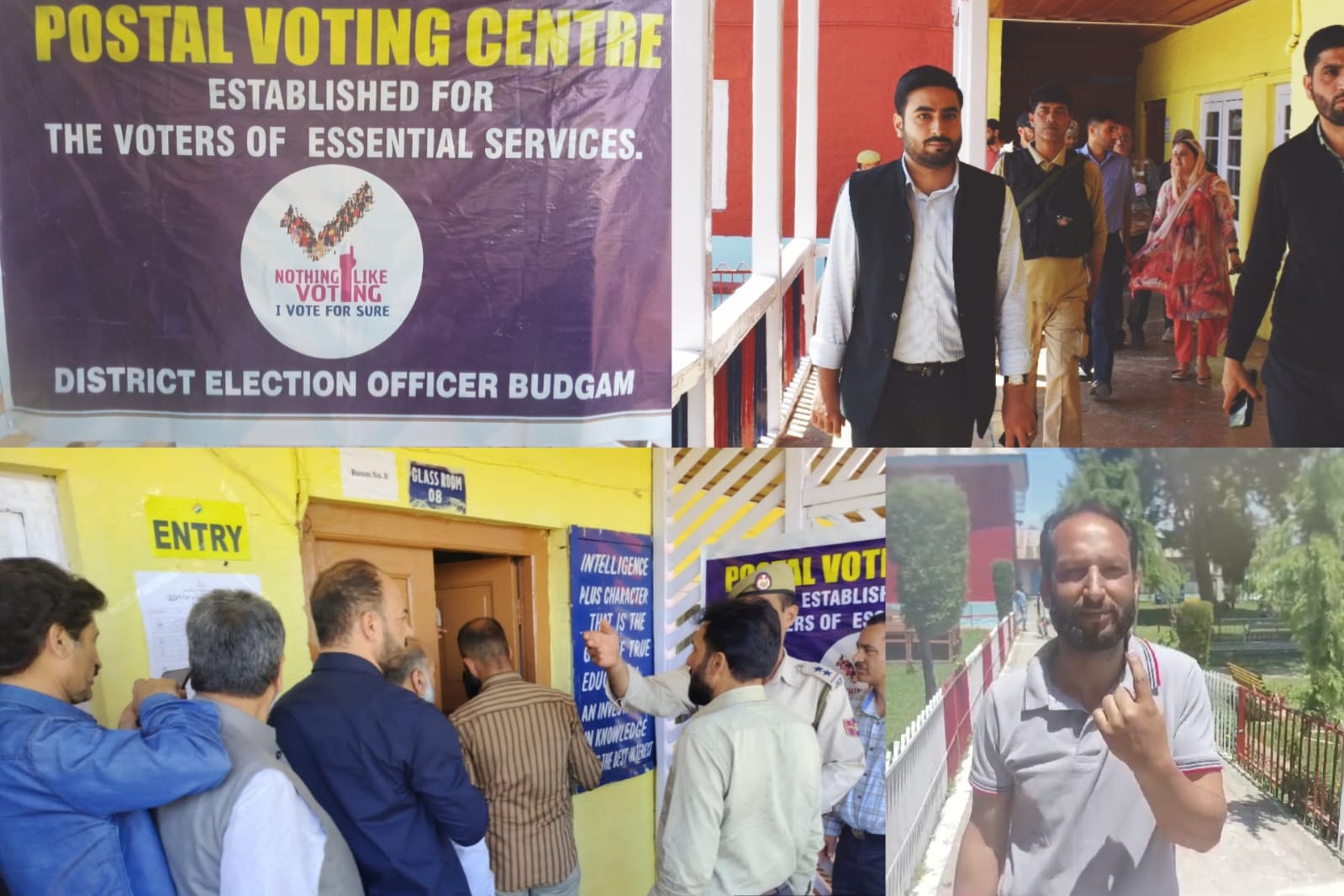 BUDGAM: The process of postal ballot voting began today at Budgam, marking an important step in ensuring that all eligible voters, especially employees in essential services who may not be able to attend polling stations on election day, have the opportunity to exercise their democratic rights.