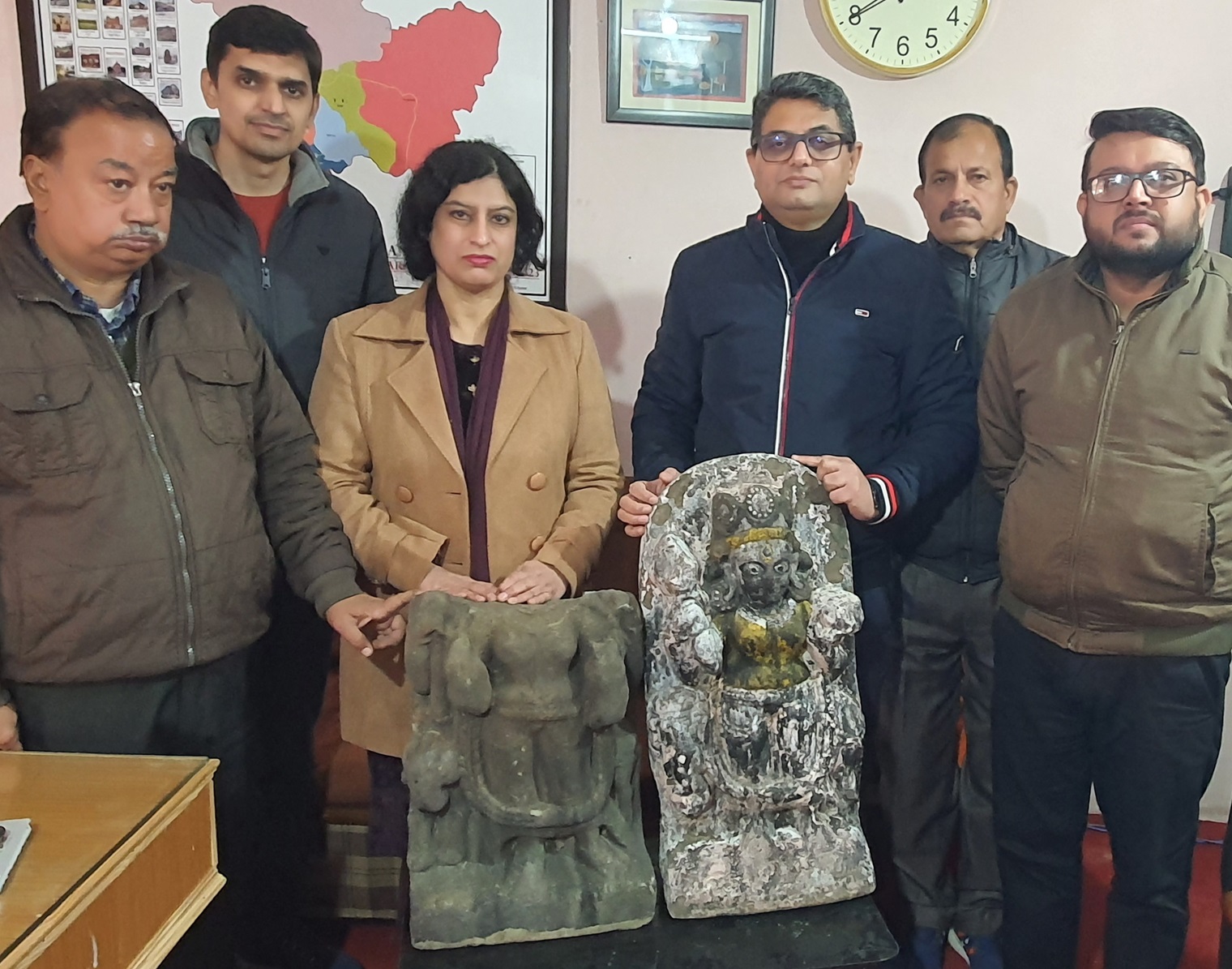 As per the officials, the department was informed through some sources about the existence of rare sculptures unearthed in the Bhour Camp area. Accordingly, a team of the Archaeology department, under the guidance and supervision of Director Archives, Archaeology and Museums Pardeep Kumar, visited the site on 19th December 2023 . The possession of the sculptures was taken by the team as per the provision of J&K c Act 1954.