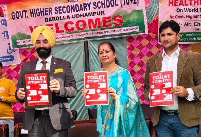 During the event, the Director launched Toilet Etiquette posters to be put on all CSCs. Various initiatives from Single Pit to Twin Pit, Compost Pits and Soak Pits, and projects aimed at promoting sustainable sanitation were showcased at Government Higher Secondary School, Barallo Udhampur. The Director also visited the GOBARDHAN project in the block.