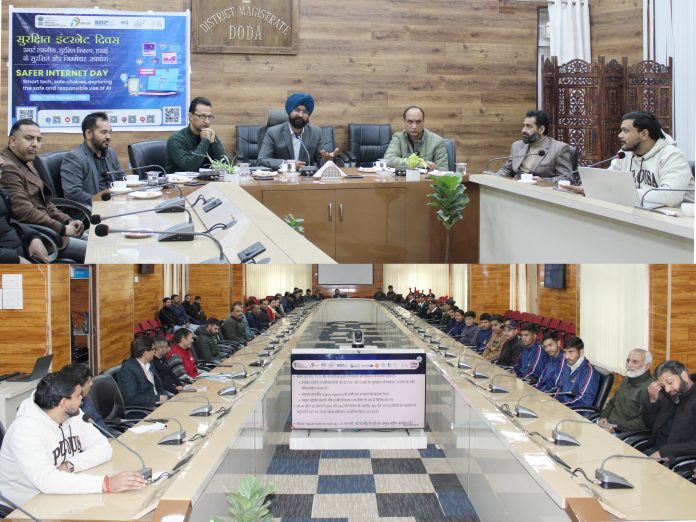 DODA: Safer Internet Day was observed today in Doda at conference Hall DC complex Doda with the theme “Smart Tech, Safe Choices: Exploring the Safe and Responsible Use of AI,” aiming to raise awareness about digital safety, ethical use of technology and responsible engagement with Artificial Intelligence.