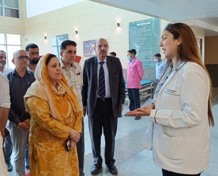 Later, Sakeena Itoo undertook a comprehensive round of the different sections of the institute. She visited the Academic Block, Convention Centre, Centre for Advanced Genomics and Precision Medicine, Library, Outpatient Department (OPD), Inpatient Department (IPD), Emergency Department, Radiodiagonosis unit including MRI, X-ray and Fluoroscopy section. She expressed satisfaction at the world-class standards being upheld in medical education and training at this prestigious institution.