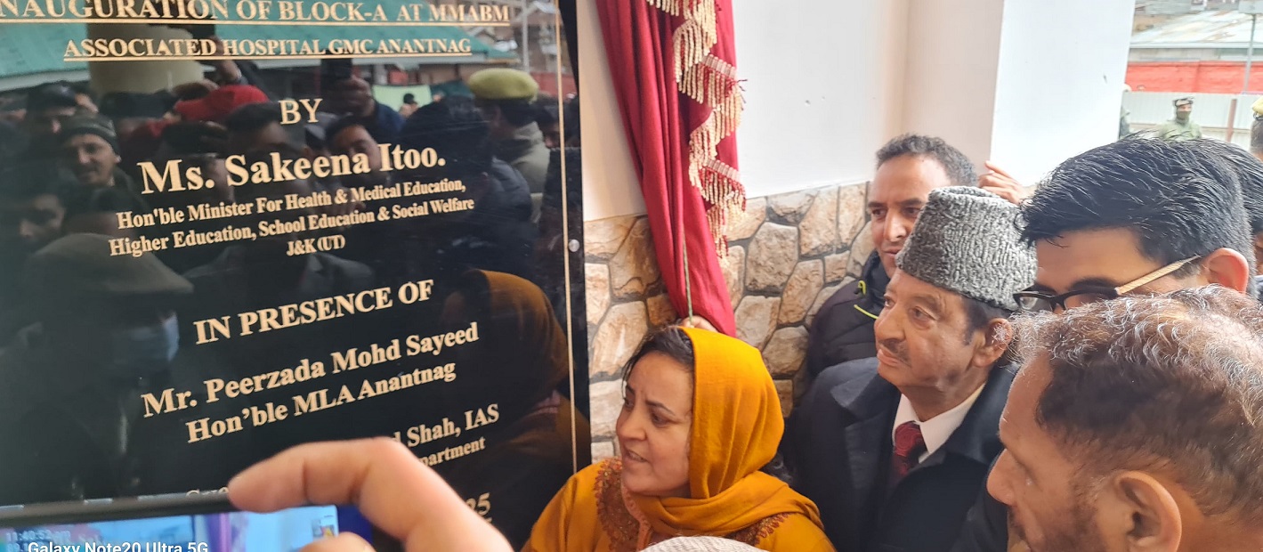 ANANTNAG: Minister for Health and Medical Education, Social Welfare and Education, Sakeena Itoo, inaugurated Catheterization Laboratory (Cath-Lab) and newly constructed Block-A of Mirza Mohammad Afzal Beigh Memorial (MMABM) Associated Hospital, GMC Anantnag, here today.