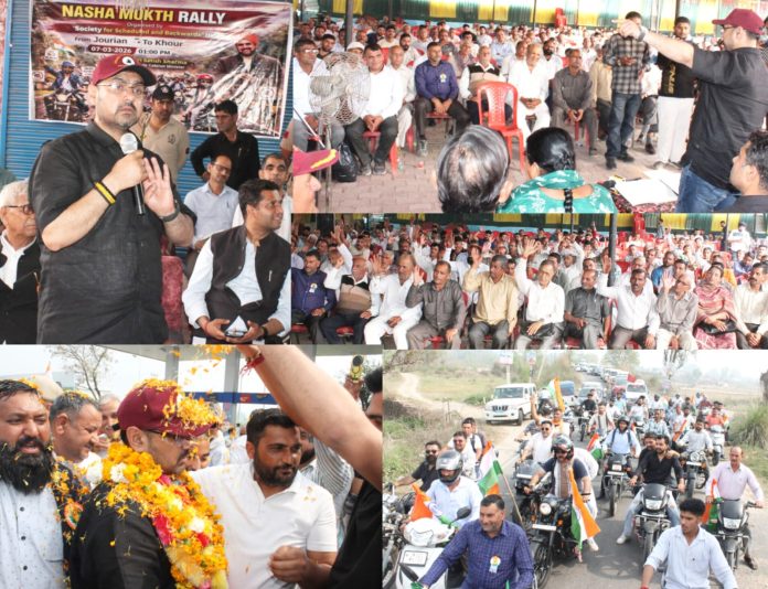 JAMMU: In a significant initiative aimed at spreading awareness against drug abuse and promoting a healthy society, Minister for Food, Civil Supplies & Consumer Affairs (FCS&CA), IT, Transport, Youth Services & Sports, and Science & Technology, Satish Sharma, today flagged off a “Nasha Mukt” motorcycle rally from Jourian to Khour.