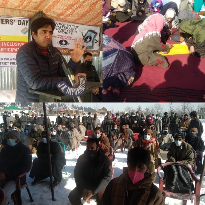 Among others, Chief Education Officer Pulwama, Nodal Officer SVEEP, Tehsildar Rajpora, Young prospective voters/students of various educational institutions were the main participants, besides religious and political representatives, PRIs, BLOs and Supervisors attended the awareness programme.