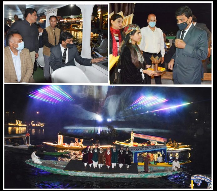 The main attraction of the function was the display of a water screen, something for the first time, in the middle of the Dal Lake which was liked by the audience comprising scores of tourists and local visitors.