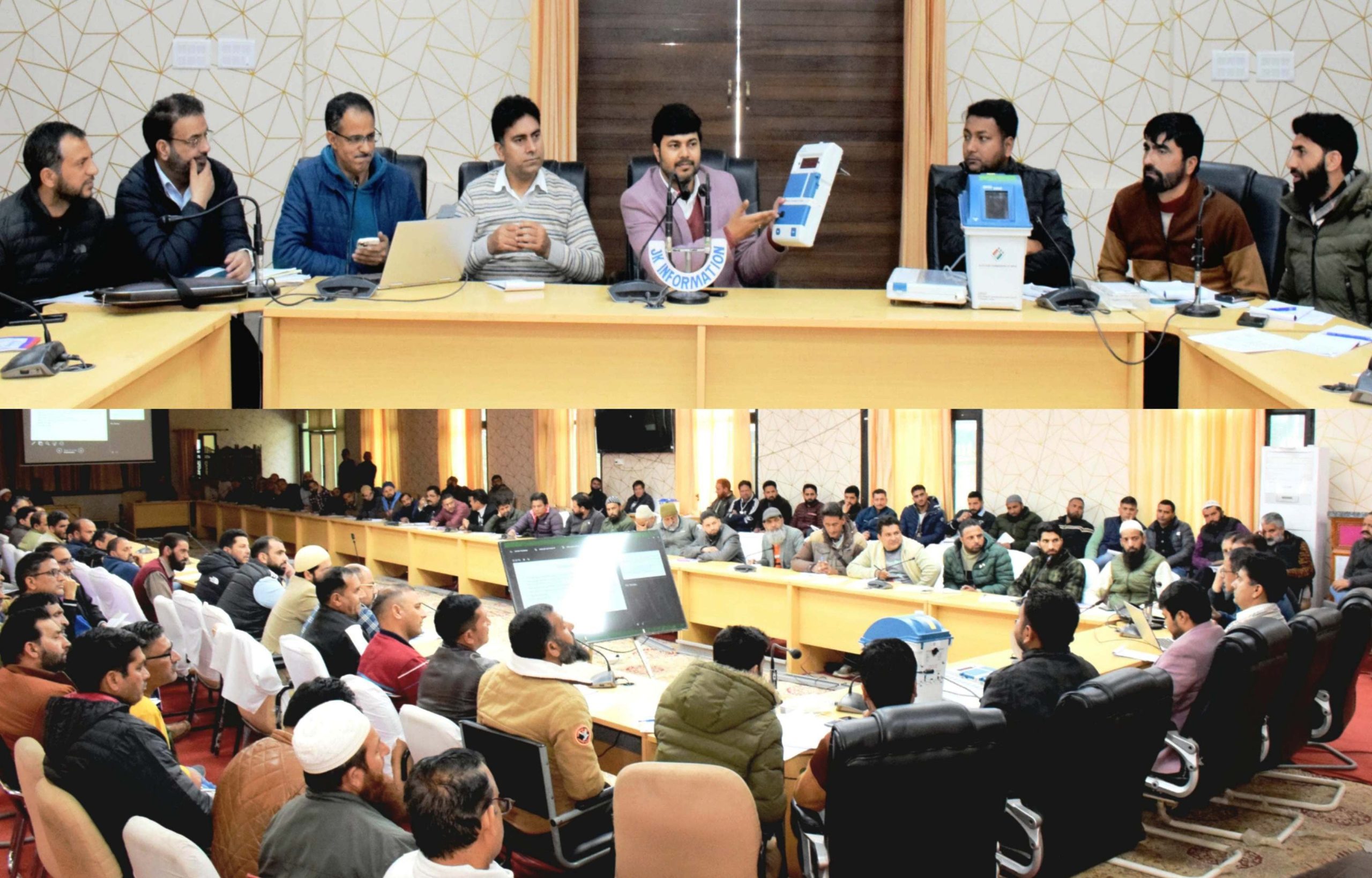 The training held in two batches, was imparted to the election staff by NLMT ECI, Riaz Ahmed Butt and District level master trainers (DLMTs) in the Conference Hall of DC Office Complex and Auditorium Hall of GDC Kishtwar.