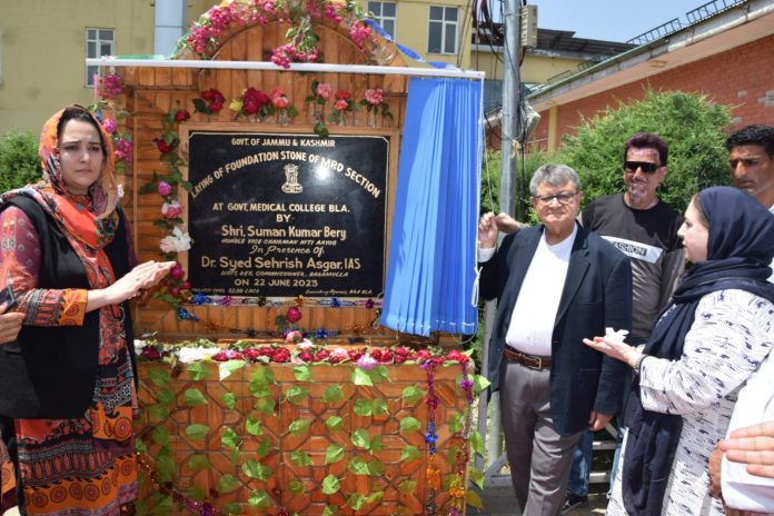 Meanwhile, the Vice Chairman NITI Aayog visited Government Medical College Baramulla where he laid stone foundation of Medical Records Department (MRD) section in presence of Dr. Raghav Langar, Principal GMC Baramulla, Dr Ruby Reshi, Superintendent Medical College Dr. Parvaiz Masoodi and other concerned. The said project is being undertaken for its execution at an estimated cost of Rs. 52 lacs.