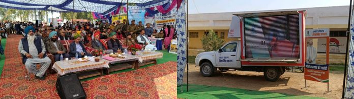SAMBA: The Viksit Bharat Sankalp Yatra, an initiative to spread awareness on flagship government schemes, reached Panchayat Chajjwal, Block Samba today.