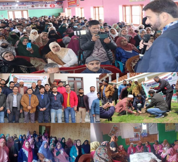 KUPWARA: To encourage citizen’s especially first time voters, to exercise their right to vote, District Administration Kupwara today organized voter awareness programmes under the Systematic Voters’ Education and Electoral Participation (SVEEP) initiative at different places in Kupwara.