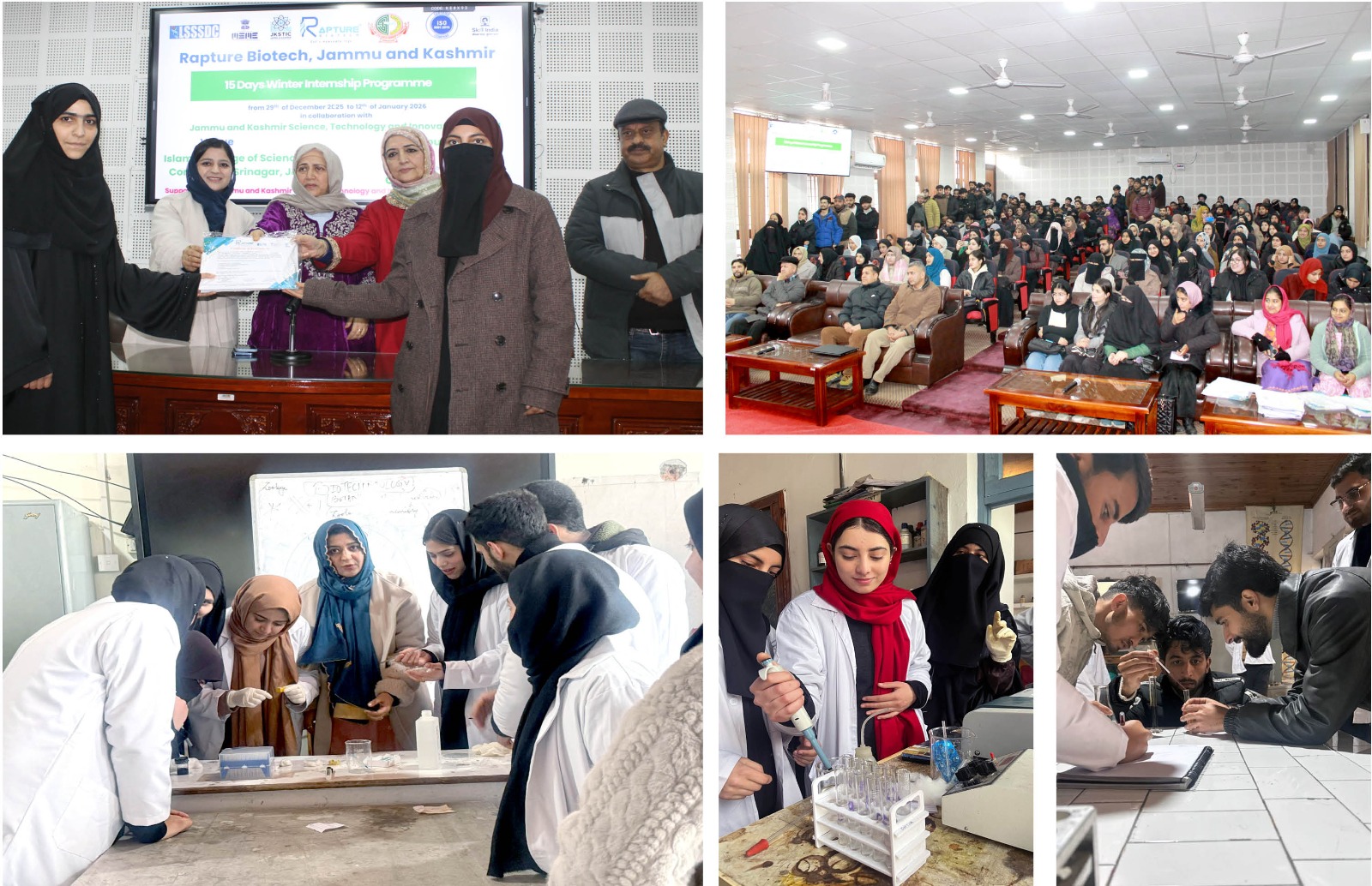 SRINAGAR: Islamia College of Science and Commerce, Srinagar, in collaboration with Rapture Biotech and sponsored by Jammu & Kashmir Science, Technology and Innovation Council (JKSTIC, successfully concluded Winter Internship Programme today.